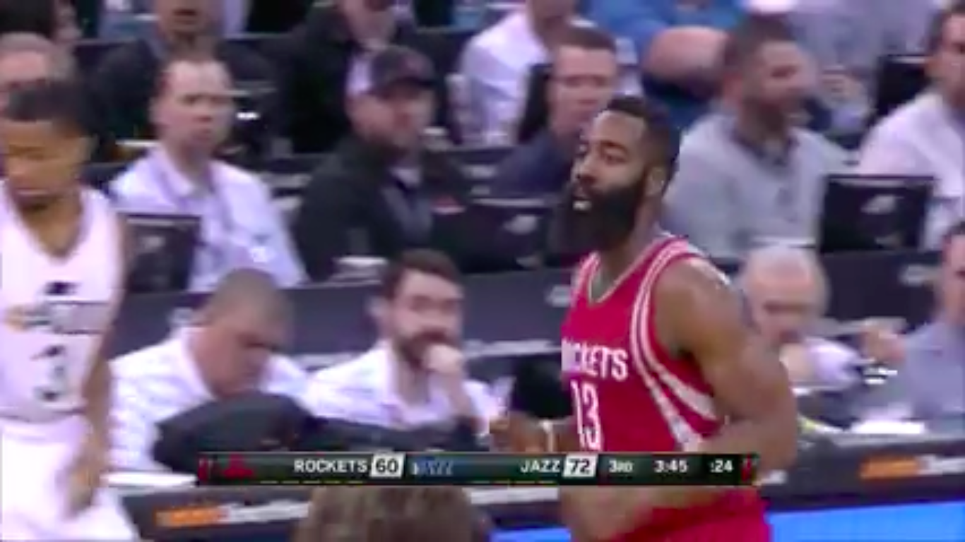 James Harden ended the game with 30 points and the Rockets rallied in the second half to beat the Jazz 93-91, ending their longest skid of the season at four games (Screenshot from Houston Rocket‘s Facebook fan page video)