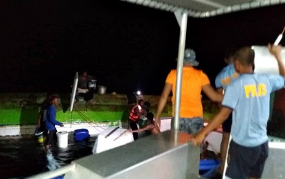 FILE: NINE FISHERMEN RESCUED. Operatives of the 2nd Special Operations Unit-Maritime Group (SOU-MG) and the Philippine Coast Guard (PCG) rescued Sunday evening the nine crewmen of motorized banca “Zander” after it capsized off Tadjo Island in Honda Bay, Barangay Sta.