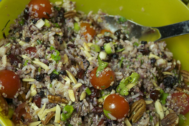 For a rice and grain salad that was colorful, hearty, and a little out of the ordinary, we mixed this healthful rice with nutty quinoa, cooking both in the same pot using the pasta method.