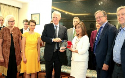 MANILA — The European Union (EU) Delegation in Manila, led by Ambassador Franz Jessen, has conferred on Senator Loren Legarda a special award for her contribution in strengthening the Philippine-EU bilateral relations.