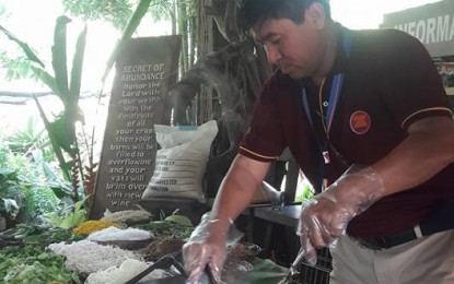 FILE: COOKING KALABUKO. A guest tries out cooking pansit “Kalabuko” at the Forest Wood Garden Farm in San Pablo City, Laguna. The kalabuko is a healthy stir-fried noodle dish made of organic vegetables and fruits. (Photo courtesy of Myrna Katigbak Frago via PNA)