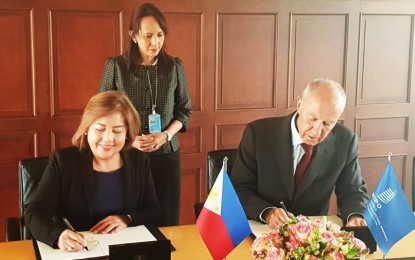 INTELLECTUAL PROPERTY. Intellectual Property Office of the Philippines Director General Josephine Santiago (left) and World Intellectual Property Organization Director General Francis Gurry sign a memorandum of understanding on enhancing intellectual property and technology support, at the margins of the WIPO General Assemblies in Geneva on Oct. 7, 2019. Deputy Permanent Representative and Chargé d’Affaires Maria Teresa Almojuela witnessed the signing of MOU.