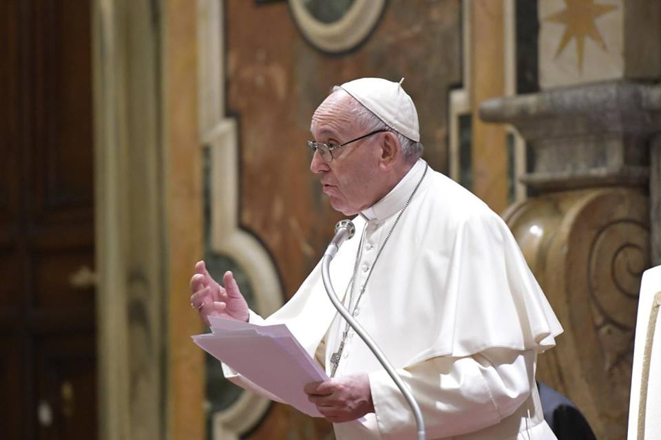 FILE: Pope Francis greets staff and students of the Alphonsian Academy in Rome, telling them that moral theology must get its “hands dirty” with concrete issues. (Photo: Vatican News/Facebook)