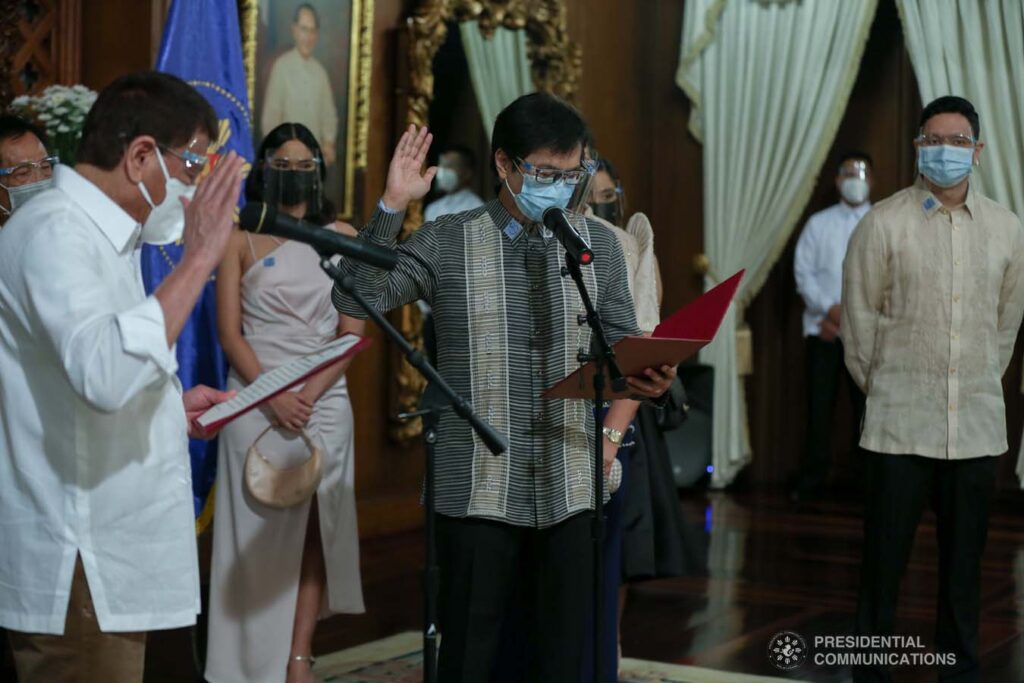 MANILA – Former Mandaluyong City Mayor Benhur Abalos took his oath before President Rodrigo Duterte on Monday as the new chairman of the Metropolitan Manila Development Authority (MMDA).