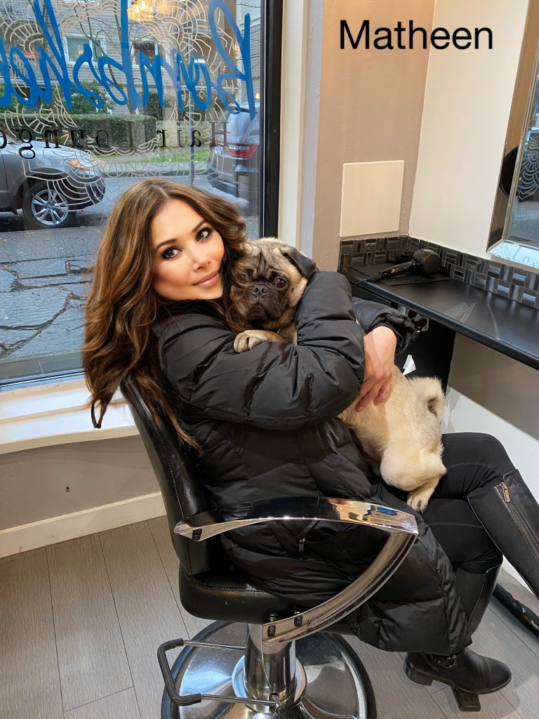 5:30pm to 6:30pm PST: Maria goes to her favourite salon for her weekly hair appointment. There, she gets a hair massage, a hair mask treatment, shampoo, and a blow dry. But the real reason why she goes to the salon every Saturday is because of her hairdresser’s adorable pug, Edison. Maria spends an hour playing with Edison, cuddling and hugging him. While at the salon, Edison, the pug, loves to take a nap wrapped in her arms. She always brings Edison chewable treats! Maria goes to the salon, not just for her hair, but to get her weekly dog therapy from Edison.