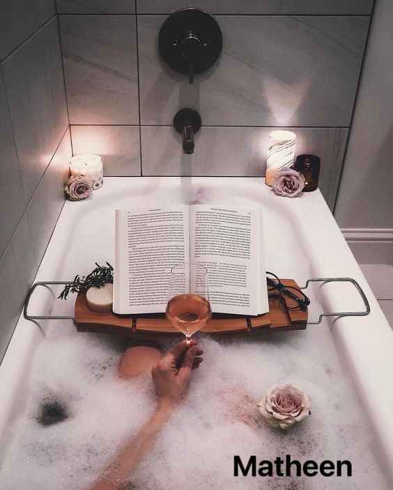 12:00 midnight: Maria indulges in her hot bubble bath with a glass of her favourite wine and a good classic book borrowed from the library. She loves classic books such as Dostoevsky’s Crime and Punishment or Jane Austen’s Pride and Prejudice. Moreover, Maria loves the smell of library books. She loves the feel and touch of an old book.