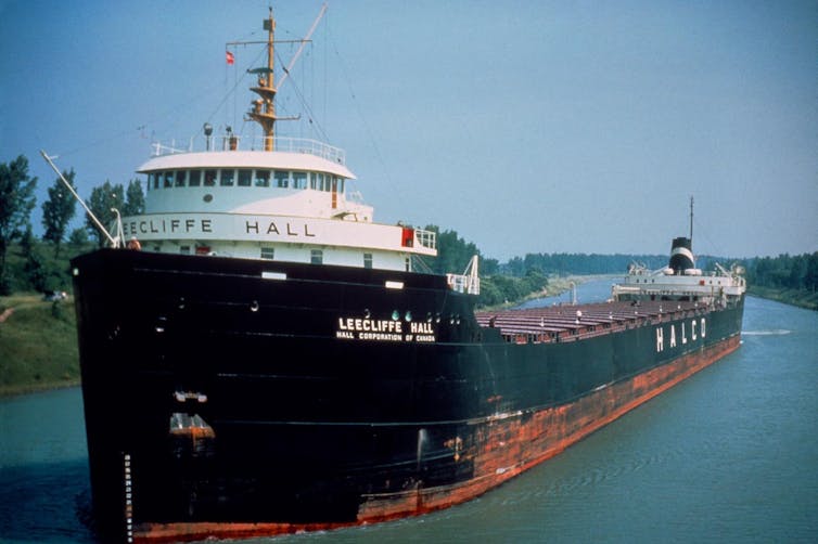 The SS “Leecliffe Hall” sailing on the Welland Canal, Ontario, shortly before it sank in the St. Lawrence.