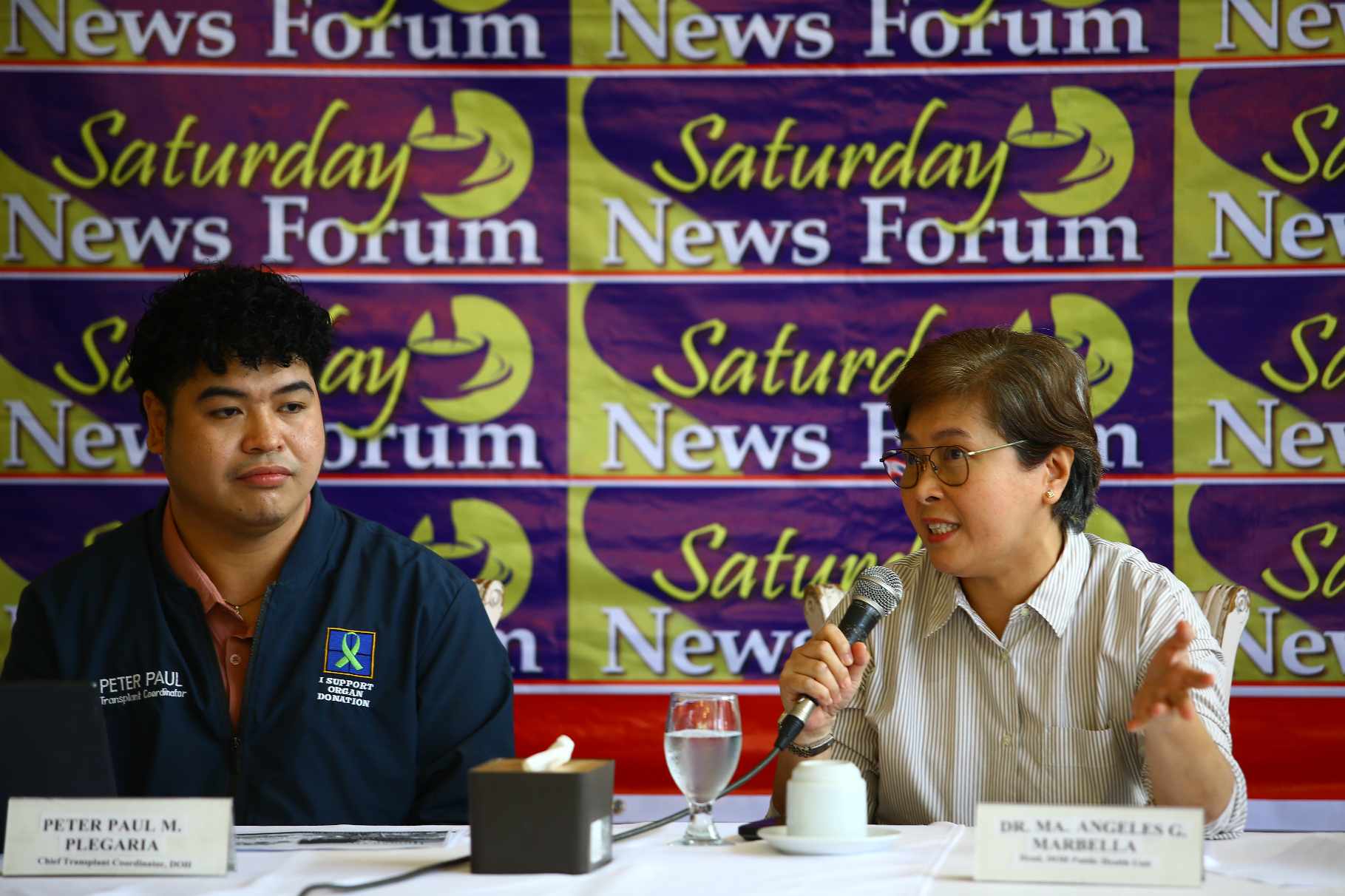 National Kidney and Transplant Institute’s Peter Paul Plegaria (left), chief transplant coordinator of the Human Organ Preservation Effort, and Dr. Maria Angeles Marbella, Public Health Unit head, guest at the Saturday News Forum (Feb. 24, 2024) at Dapo Restaurant in Quezon City. (PNA photo by Joan Bondoc)