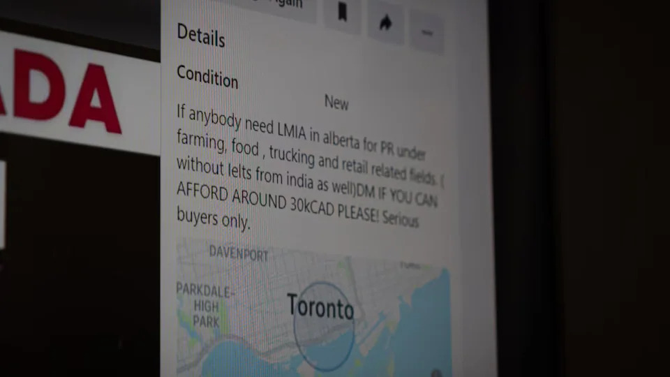 In October, an in-depth investigation by CBC/IJF uncovered a thriving black market for LMIAs. Reporters tracked dozens of online accounts (new window) openly selling LMIA-supported jobs and government documentation on sites such as Kijiji and Facebook Marketplace.