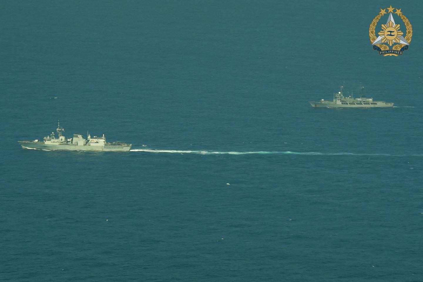 FILE: STEAMING AHEAD. The Philippine Navy’s offshore patrol vessel, BRP Andres Bonifacio (PS-17) (behind) and the Royal Canadian Navy’s HMCS Ottawa (FFH-341) sail during the 7th multilateral maritime cooperative activity that was held within the Philippines’ exclusive economic zone on Feb. 12, 2025. The seventh MMCA featured a series of operational exercises focused on enhancing coordination and interoperability between the Philippines and Canada. (Photo: Armed Forces of the Philippines/Facebook)