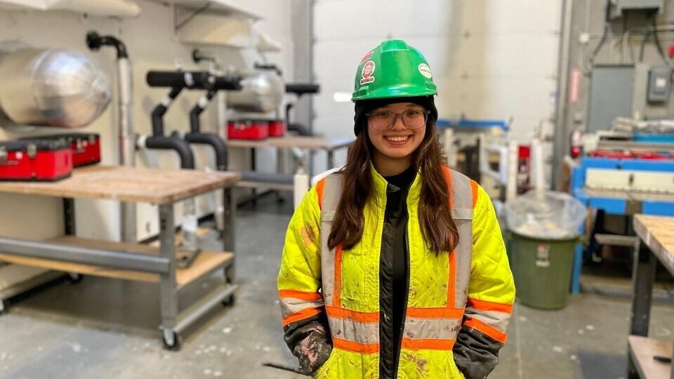 Ann Ralls went through three months of training as a mechanical insulator. The training was set up by the Youth Climate Corps B.C., a program that offers young people paid training in a variety of jobs that help with climate change. Photo: CBC / Rachel Sanders