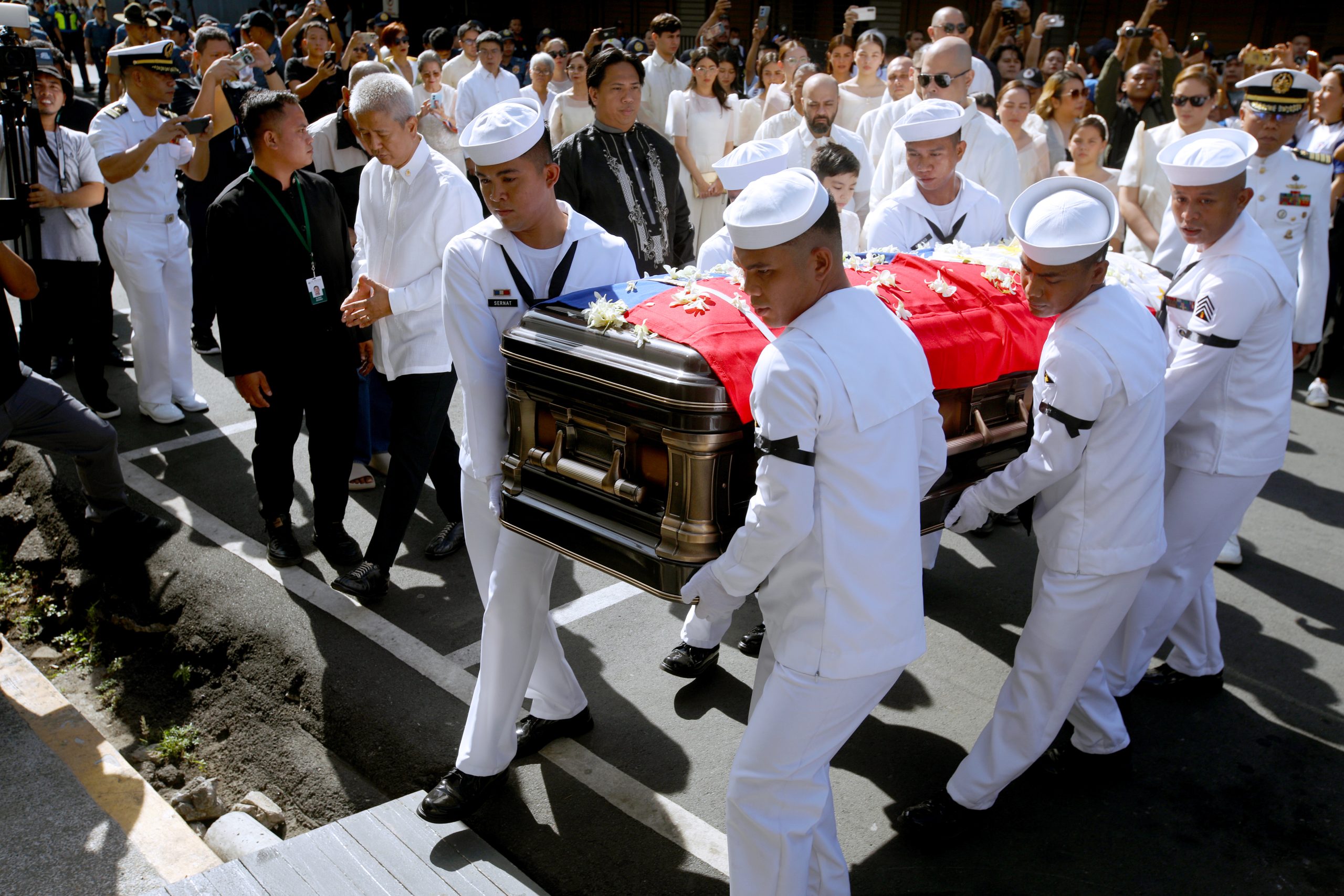 FAREWELL, SUPERSTAR. Family and supporters accompany the body of National Artist for Film and Broadcast Arts Nora Aunor for a necrological service at Metropolitan Theater in Manila on Tuesday (April 22, 2025).
