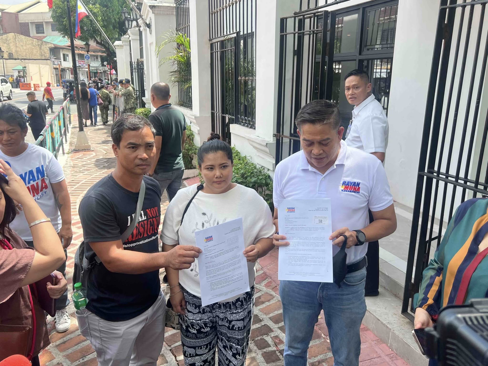 Bayan Muna appealed to the President to issue an executive order rescinding the JVAs, direct the Local Water Utilities Administration to retake control of affected districts, and order a full investigation into the deals.