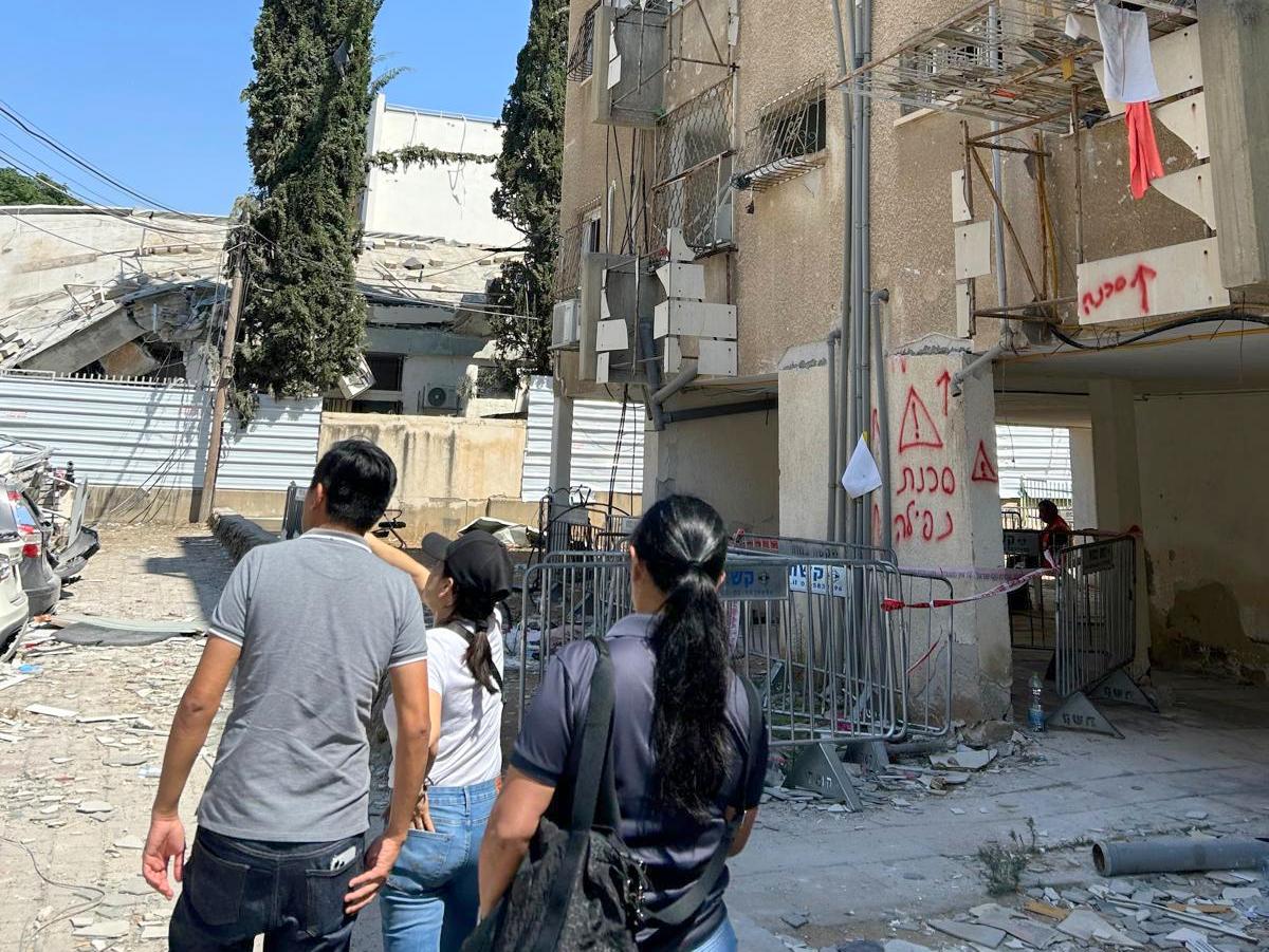 CASUALTY OF WAR. A residential building in Bnei Brak City, Israel destroyed by Iranian missile attacks, visited by Philippine embassy officials on June 19, 2025. The lone Filipino at home at the time of the attack survived by immediately hiding in the bomb shelter. (Photo: Philippine Embassy in Israel/Facebook)