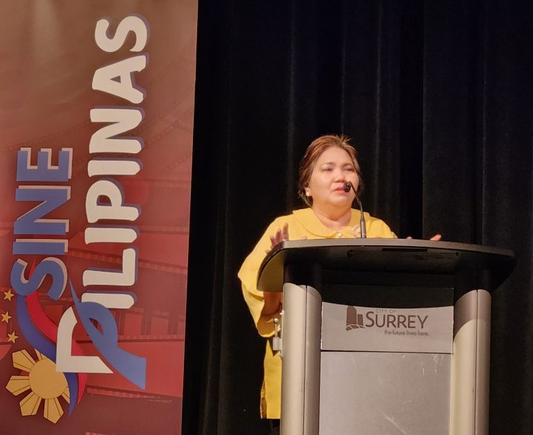 Consul General Gina A. Jamoralin delivers her message of support for Filipino independent cinema. (Photo by Vancouver PCG)