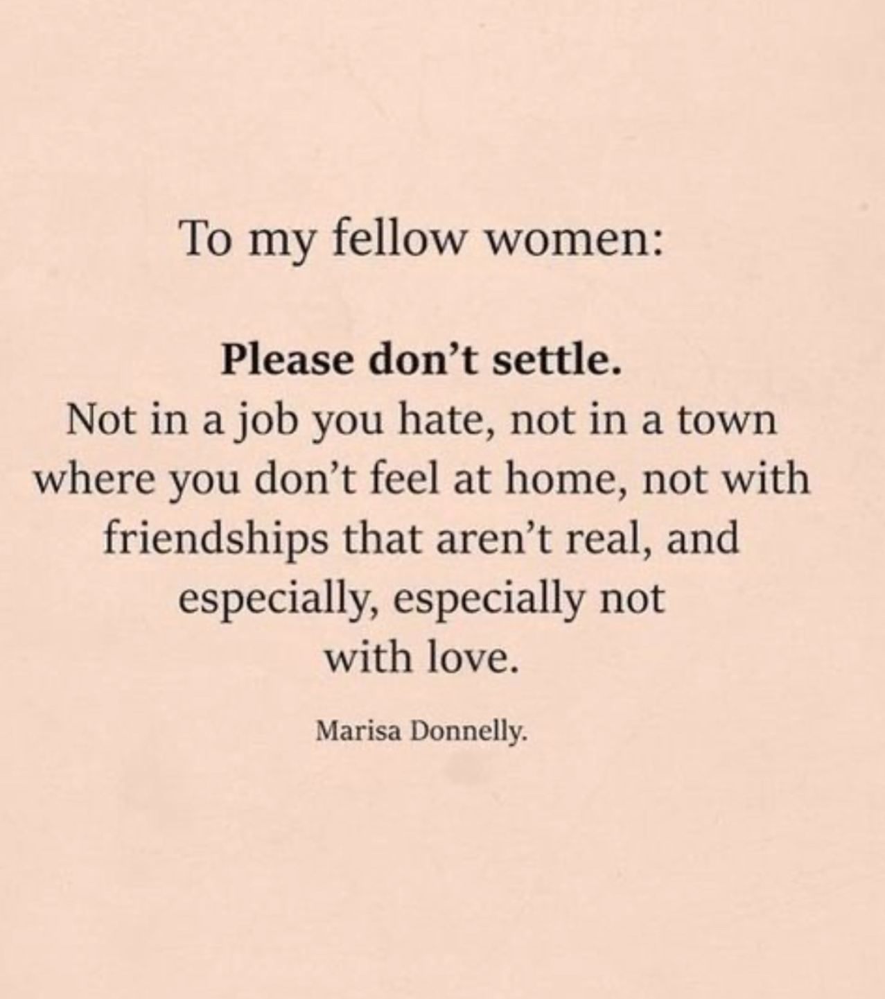She does not settle for less than what she deserves. She prioritizes her wellbeing and values by not accepting situations, relationships, and opportunities that are well below her standards. She refuses to feel undervalued, unfulfilled, and disrespected.