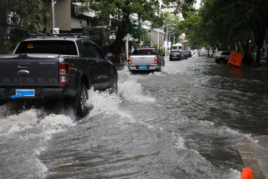 FILE: Areas in Ermita, Manila flooded anew after a brief thunderstorm Sunday afternoon (Aug. 24, 2025), including busy Pedro Gil Street, where a university and a mall are located.