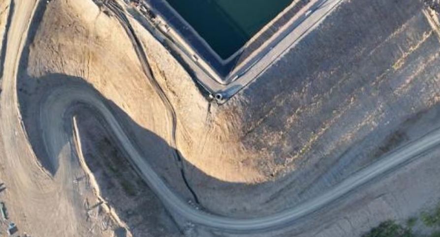 An aerial of the events pond at the Eagle Gold mine site on Aug. 30, 2025. (PricewaterhouseCoopers/Waterline)