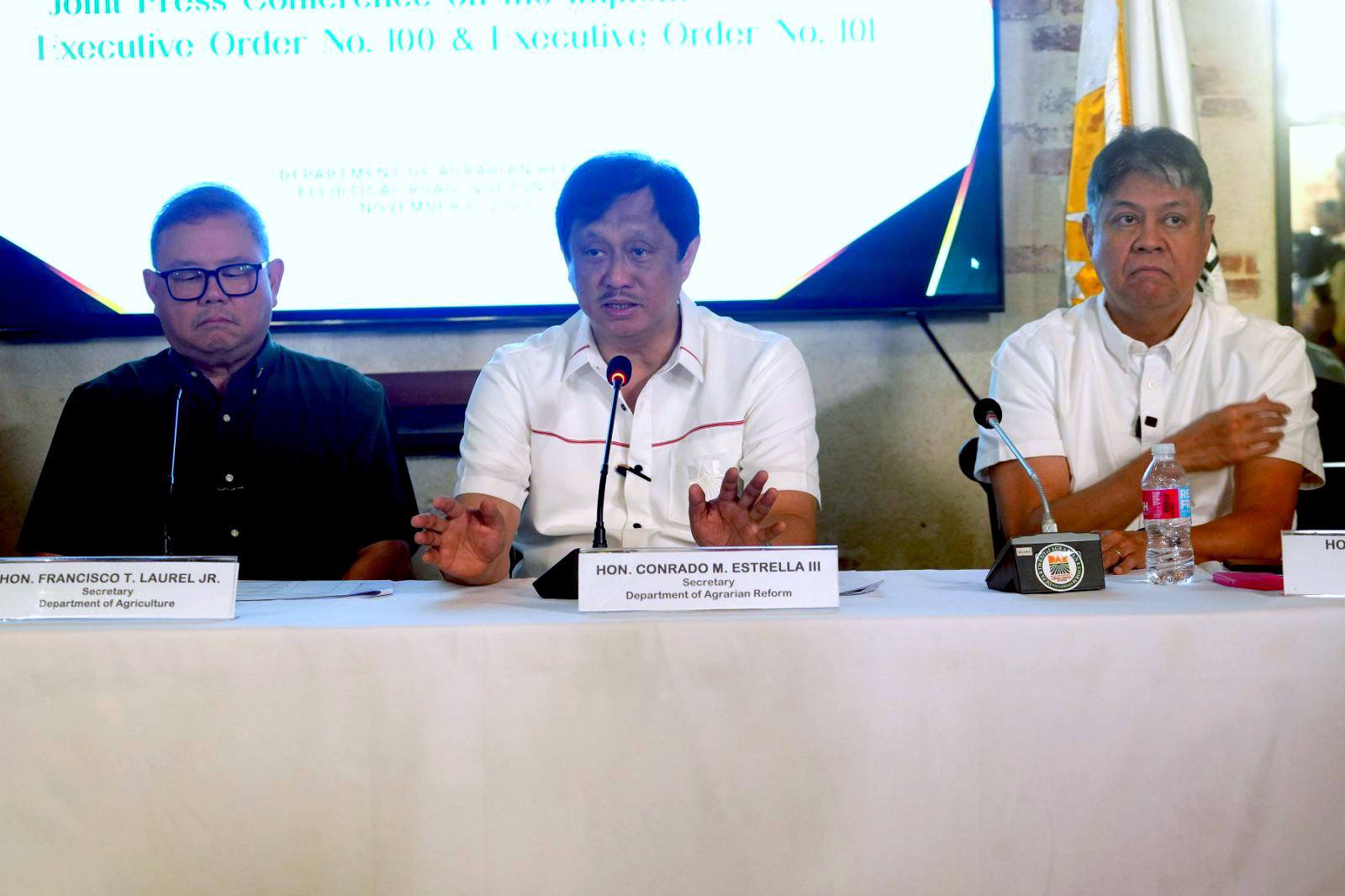 TARIFF TALK. Department of Agriculture (DA) Secretary Francisco Tiu Laurel Jr. (Left) leads a press briefing in Quezon City on Thursday (Nov. 6, 2025). Tiu Laurel said the Philippines will resume importing rice by January next year with a new tariff rate that will be determined next month. (Photo: PNA/Facebook)