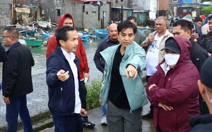 WASTED TAX. Department of Public Works and Highways Secretary Vince Dizon (left) and Navotas Mayor John Rey Tiangco inspect a collapsed seawall on Monday (Nov. 10, 2025). The DPWH said it will file charges against contractor Hi-Tone Construction & Development Corp., owned by Christopher Co, who is the brother of former Ako Bicol partylist congressman Zaldy Co. (Photo: PNA)