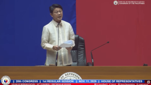 REFORM. House Speaker Faustino “Bojie” Dy III urged members of the House of Representatives on Tuesday to support the passage of an Anti-Political Dynasty Bill in fighting corruption (Nov. 11, 2025). (Screengrab from House of Representatives/YouTube)