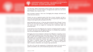 Citing a Supreme Court’s ruling, MAD affirmed that red-tagging “imperils the rights to life, liberty, and security and chills legitimate advocacy,” and the practice “corrodes the rule of law and endangers those it labels and vilifies.”
