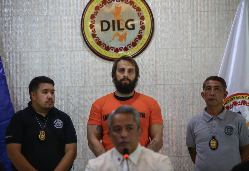GOING HOME. Controversial Russian vlogger Vitaly Zdorovetskiy is presented during a press conference at the Department of the Interior and Local Government office in Quezon City on Thursday (Jan. 15, 2026). DILG Secretary Juanito Victor “Jonvic” Remulla said Zdorovetskiy, arrested last year for engaging in a series of law-breaking stunts as content for his YouTube videos, is set to be deported after serving his sentence in the Philippines. (Photo: PNA/Facebook)