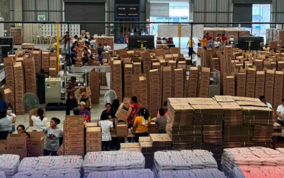 DISASTER RESPONSE. Volunteers help repack family food packs at the Department of Social Welfare and Development’s (DSWD) Luzon Disaster Resource Center in Pasay City in this undated photo. The DSWD on Thursday (Jan. 15, 2026) said it is on blue alert status as it monitors the track of Tropical Depression Ada. (Photo: PNA)