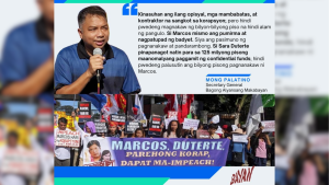 Endorsed by members of the Makabayan bloc, BAYAN’s grounds for impeachment of Marcos included his adoption of the Baselined-Balanced-Managed (BBM) Parametric Formula for infrastructure allocation, and his abuse of authority by using unprogrammed appropriations and receiving kickbacks from the flood control scandal.