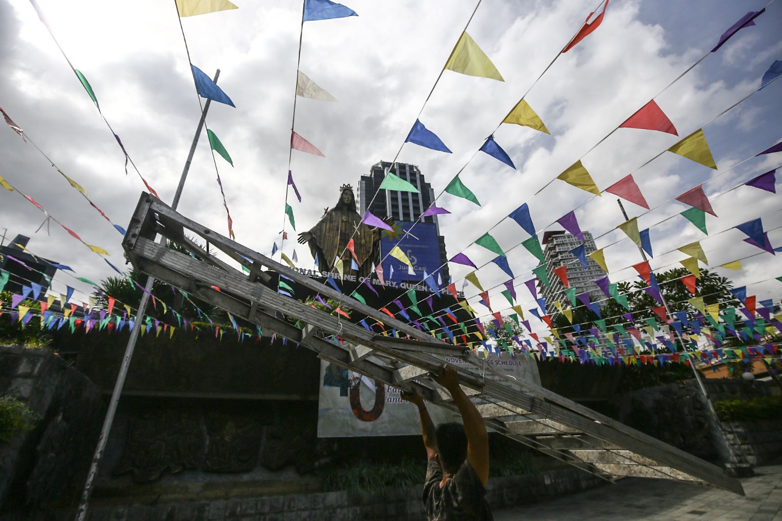 EDSA PREPS. The National Shrine of Mary, Queen of Peace-EDSA Shrine in Quezon City is being spruced up on Friday (Feb. 20, 2026) ahead of the 40th anniversary of the EDSA Revolution. The place will be the central location of the third part of the Trillion Peso March on Wednesday (Feb. 25) organized by civil society, church and progressive groups. (Photo: PNA/Facebook)