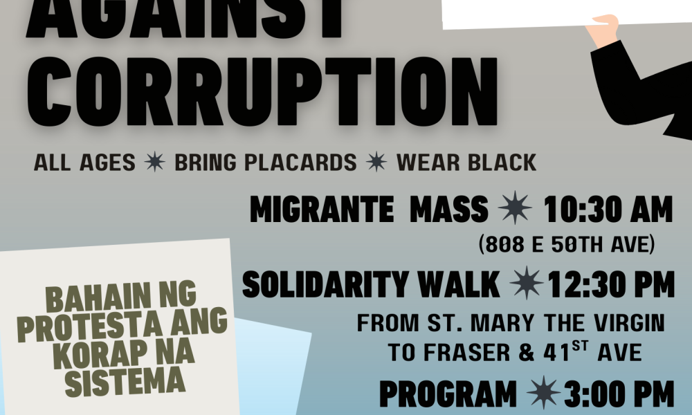 Date: Saturday, September 20,2025 Time: 1:00PM Location: Metrotown Banquet Hall, 6515 Bonsor Avenue, Burnaby The Filipino community in Metro Vancouver will be joining global protest...