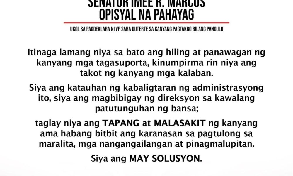 By Trisha Matabalan, Philippine Canadian Inquirer February 18, 2026 MANDALUYONG, Philippines – Today, Vice President Sara Duterte holds a press conference wherein she expresses her desire...