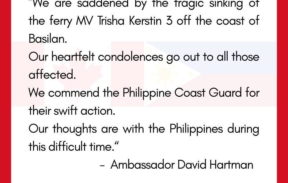 Philippine Canadian Inquirer January 27, 2026 MANILA, Philippines — The Canadian Embassy in the Philippines extended its heartfelt condolences to the loved ones of the individuals...