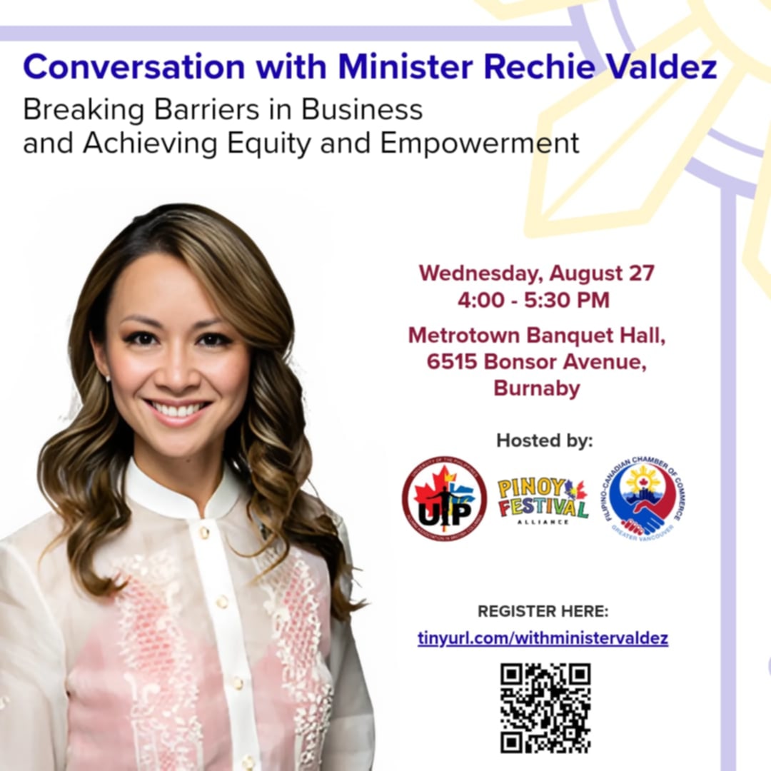 Organized by: Pinoy Festival Alliance, UP Alumni Association in BC and Filipino Canadian Chamber of Commerce – Greater Vancouver (FCCC-GV) What: A discussion with Minister Rechie Valdez on women, small business development and diversity in business, highlighting the contributions of Filipino Canadians When: (Today) Wednesday, August 27, 4:00 PM – 5:30 PM (program begins at […]