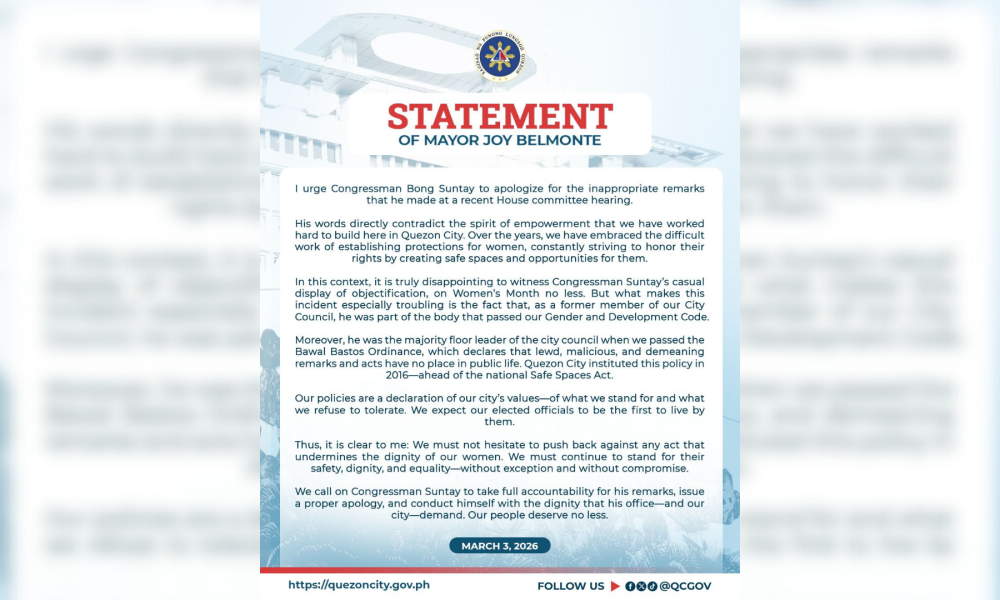Philippine Canadian Inquirer March 4, 2026 MANILA, Philippines — Quezon City (QC) Mayor Joy Belmonte called out the city’s 4th District Rep. Bong Suntay over his...