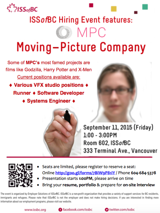ISS of BC Hiring Event features Moving-Picture Company (MPC)