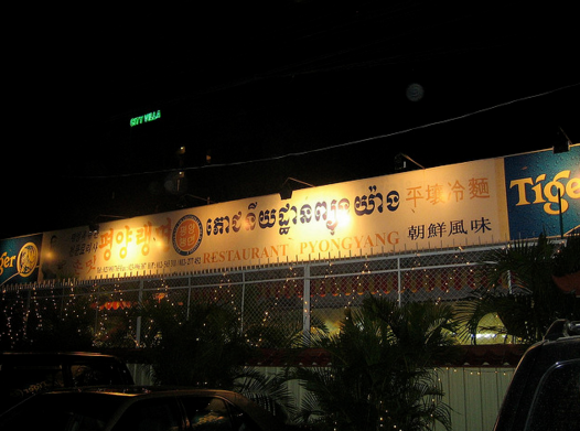 Sign of a North Korean restaurant in Cambodia. (Photo by Yosomono/Flickr)