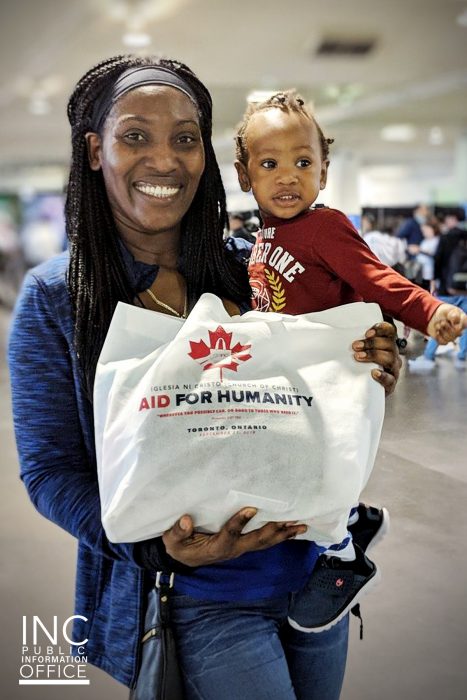 Odinga Saxon visited a food bank this week and found out about the Aid for Humanity event. She arrived at Exhibition place with her young son, and she was overwhelmed with gratitude for the warm welcome and care packages: “I have been in Canada for more than 15 years, and I’ve never seen anything like this. It was more than I expected… As a single mother, I try to give them the best help, the best schools, but it’s very difficult. You need help. Here, I feel joy. Here, I feel loved.”
