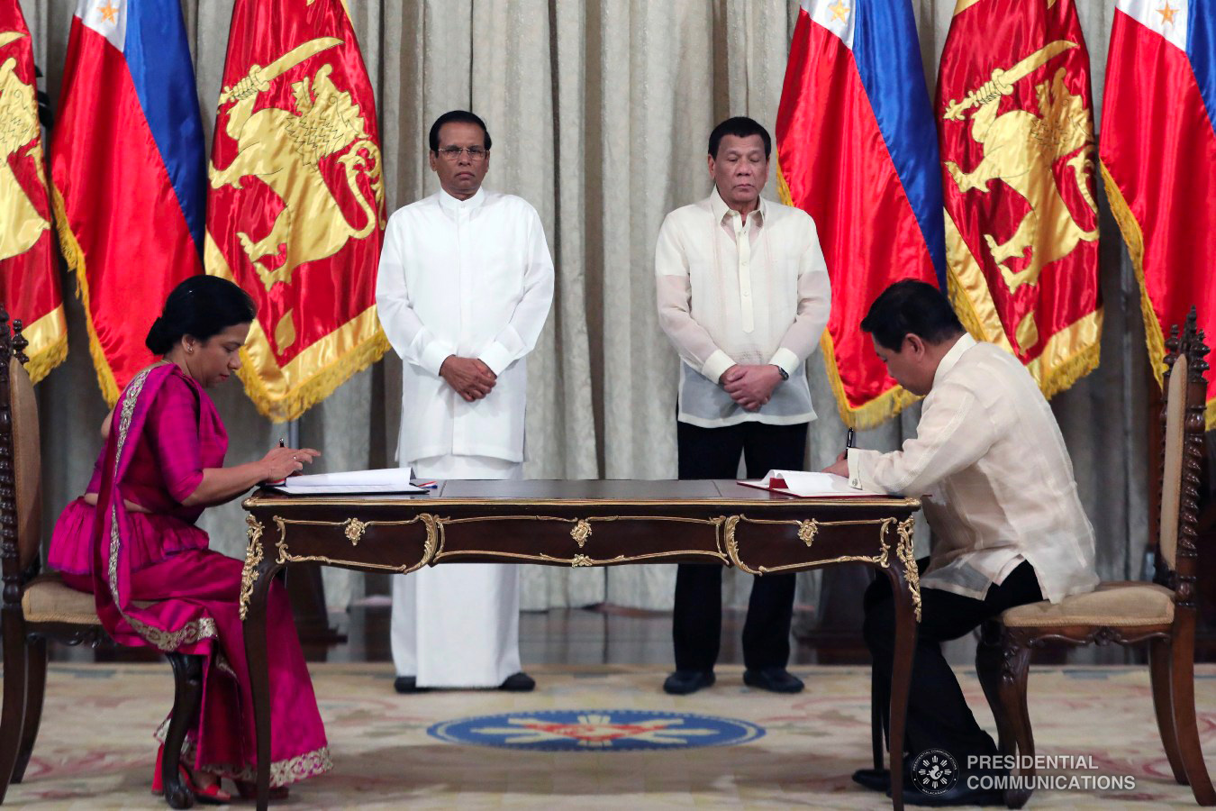 MANILA – The Philippines and Sri Lanka signed five agreements as President Rodrigo R. Duterte officially welcomed Sri Lanka President Maithripala Sirisena at Malacañang Palace on Wednesday.