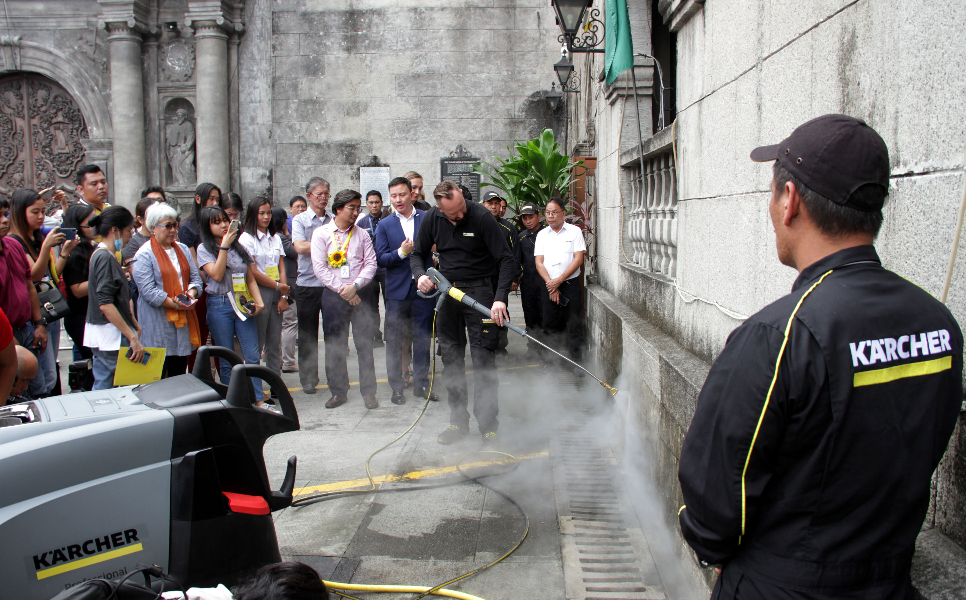In the three Philippine sites Kärcher has visited, the company used its hot-water high-pressure cleaner which utilized steam to spruce up dirt-ridden stones gently.