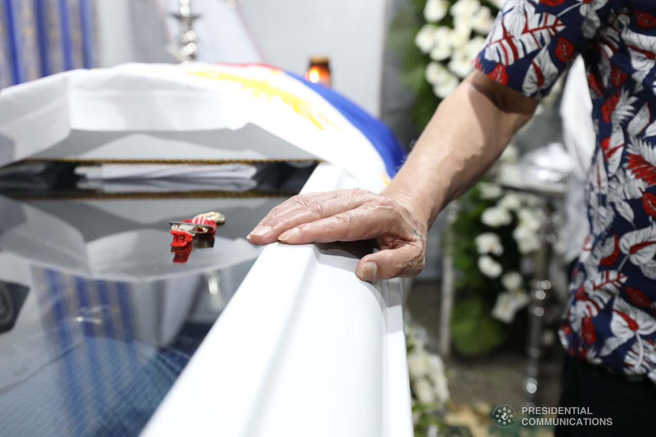 FILE: President Rodrigo Roa Duterte posthumously awards the Order of Lapu-Lapu Rank of Kalasag to the late Police Senior Master Sergeant Jason Magno as he visits the wake in Initao, Misamis Oriental on December 5, 2019. TOTO LOZANO/PRESIDENTIAL PHOTO